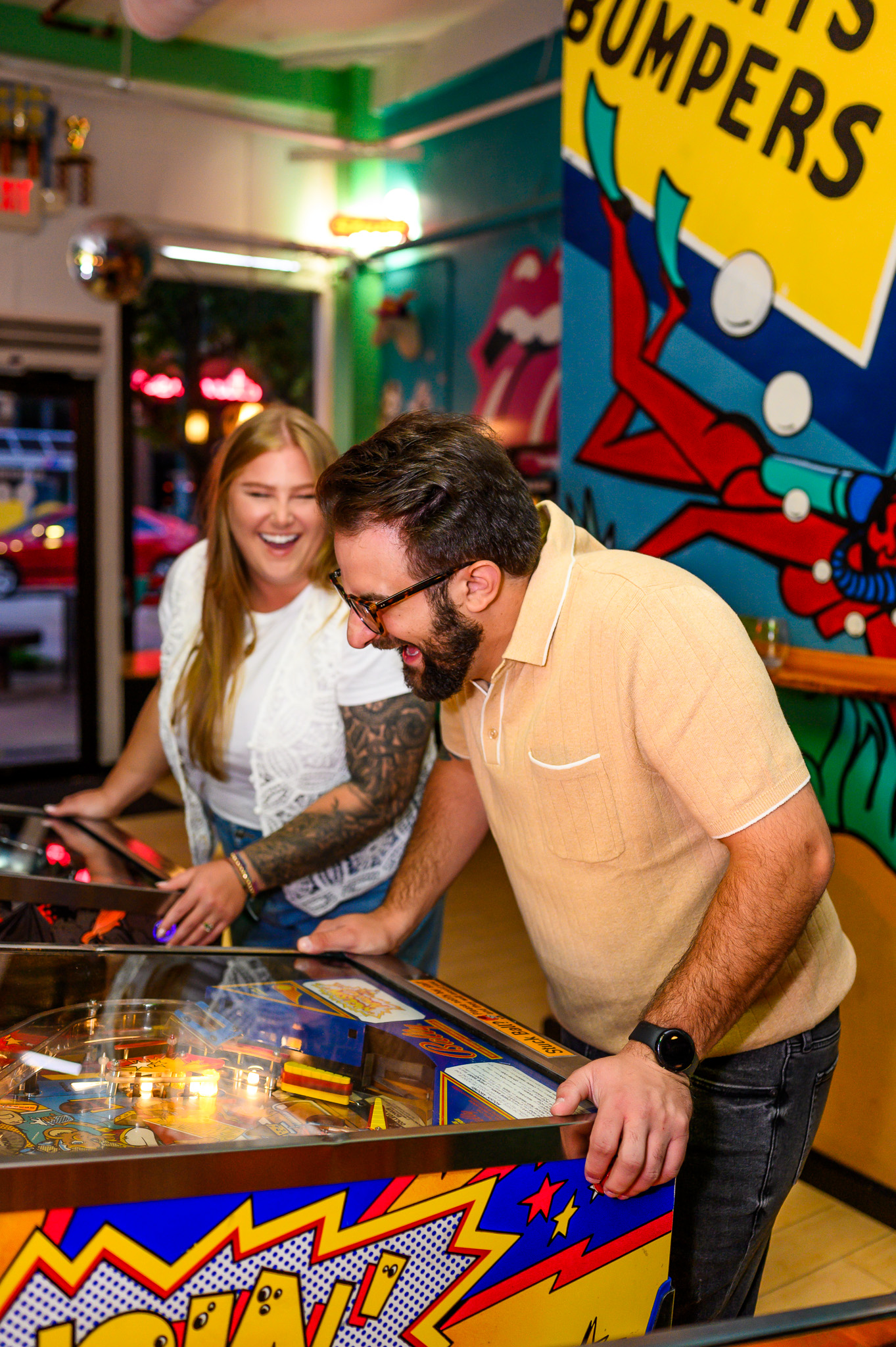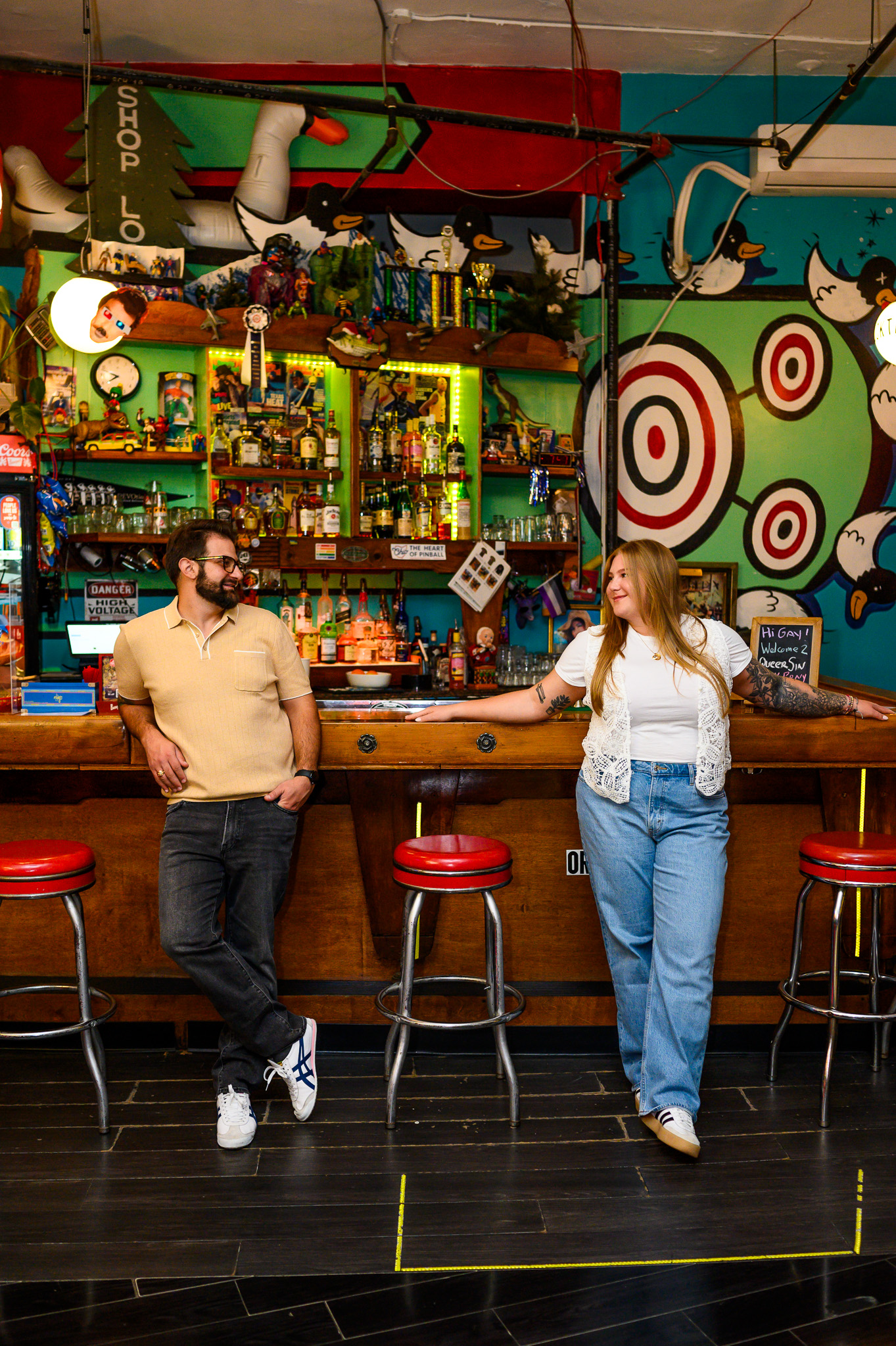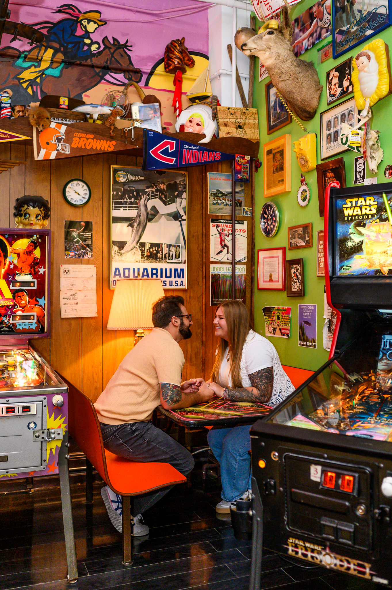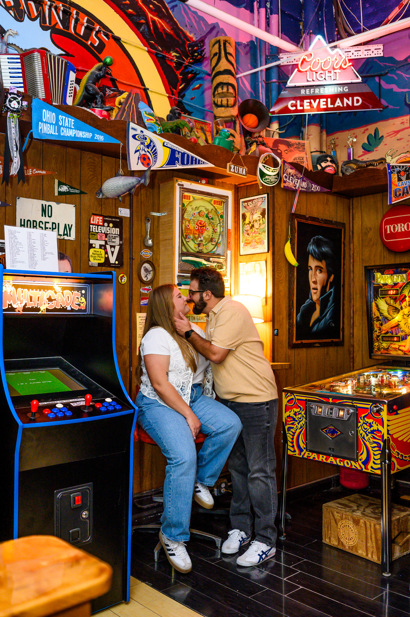 I also had the joy of capturing a lively engagement session that started at the Lebanese Cultural Garden and ended at Superelectric Pinball Parlor in Cleveland’s Gordon Square neighborhood. The Lebanese Cultural Garden, part of the city’s Cultural Gardens, set a peaceful tone, while the pinball parlor added a fun and nostalgic vibe.